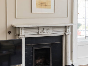 Drawing Room - A magnificent, dual-aspect drawing room is flooded with natural light from astragal sash windows and boasts an original marble fireplace, decorative cornicing, and superb proportions - ideal for both entertaining and everyday living.
