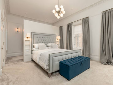 Also on this level is a further generous double bedroom, quietly positioned to the rear, together with a stylish family bathroom, also by Victor Paris, overlooking the garden and incorporating a separate shower and a wall-fitted television.