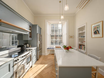 Occupying a highly desirable main-door position on one of Edinburgh’s most sought-after areas of Stockbridge, this exceptional four-bedroom, two-bathroom ground-floor flat has been meticulously refurbished by the current owners to an exacting standard.