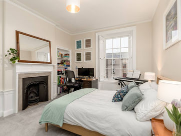Both double bedrooms are generously sized and retain attractive original features including fireplaces and Edinburgh presses. Bedroom one also provides access to a useful study area, which could serve as a nursery, walk-in wardrobe, or potentially be converted into an en-suite (subject to the necessary consents).